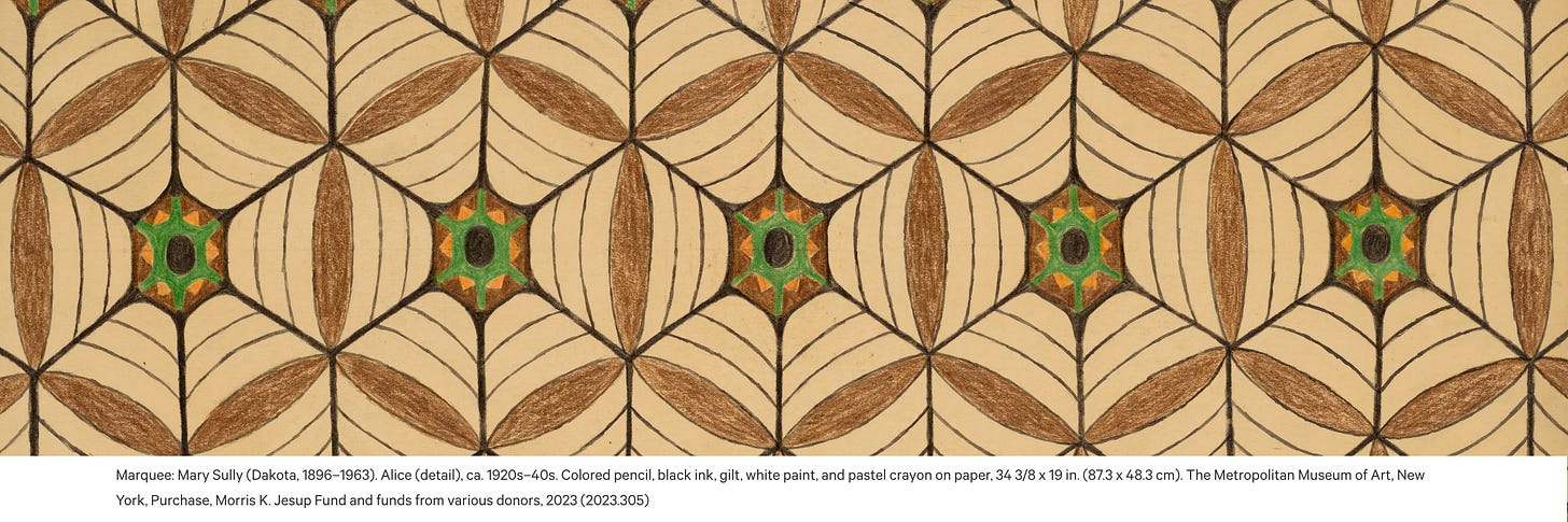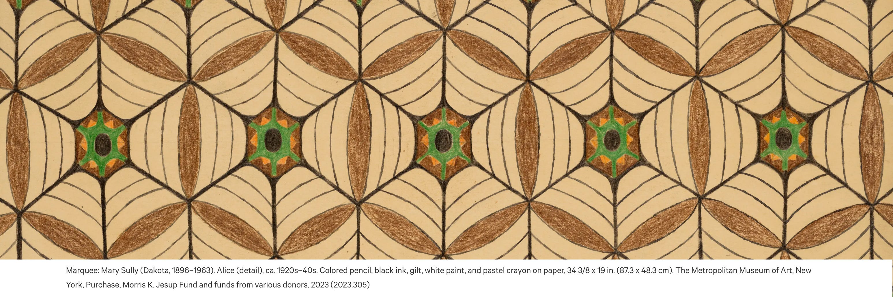 Mary Sully—born Susan Mabel Deloria on the Standing Rock Reservation in South Dakota—was a little-known, reclusive Yankton Dakota artist who, between the 1920s and 1940s, created highly distinctive work informed by her Native American and settler ancestry. This first solo exhibition of Sully’s groundbreaking production highlights recent Met acquisitions and loans from the Mary Sully Foundation, works that complicate traditional notions of Native American and modern art. This exhibition was on view July 18, 2024–January 12, 2025.